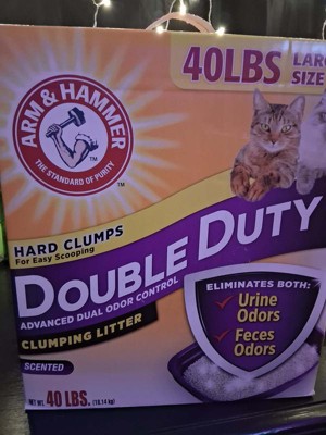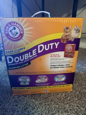 ARM & HAMMER™ Double Duty Clumping Litter eliminates both types of odors for Advanced Odor Control. Its breakthrough cat litter formula destroys urine AND feces odors on contact, and helps keep your home smelling fresh and clean with a fresh scent. ARM & HAMMER™ Cat Litter is made with odor absorbing clay and ARM & HAMMER™ Baking Soda Crystals in every scoop to neutralize litter box odor. Rock-solid clumps let you remove the source of odors easily and the fresh scent refreshes litter every time your cat uses the kitty litter box. And that’s why an odor-free home starts with ARM & HAMMER™ clumping cat litter. Plus, with this low tracking and low dust formula pour ARM & HAMMER™ kitty litter with confidence.
