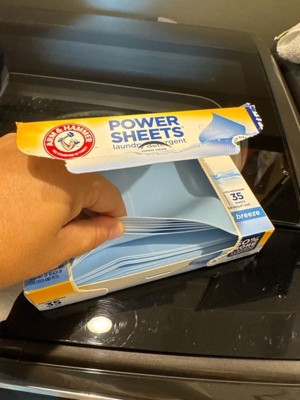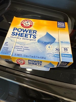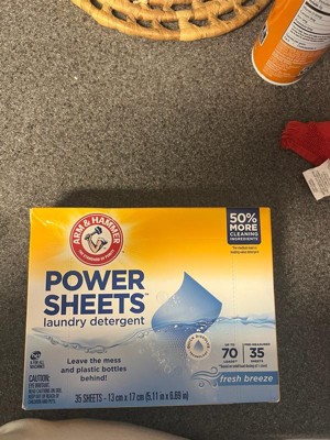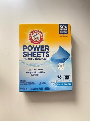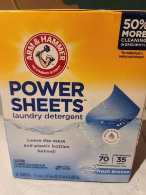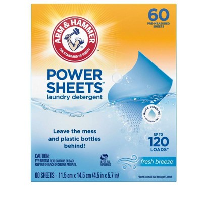 - ARM & HAMMER Power Sheets Laundry Detergent in a Fresh Breeze scent; cleans up to 120 small loads when using ½ sheet, or 60 medium loads when used as directed