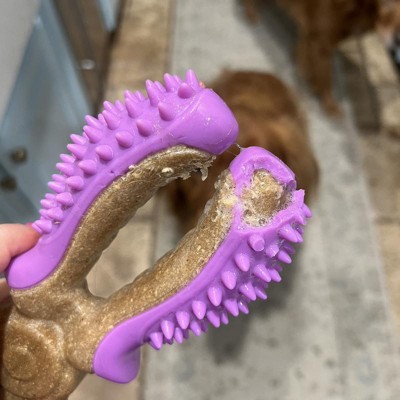 - Easy grip handles designed for dogs to enjoy chewing for hours, while durable TPR spikes help clean teeth and massage gums.