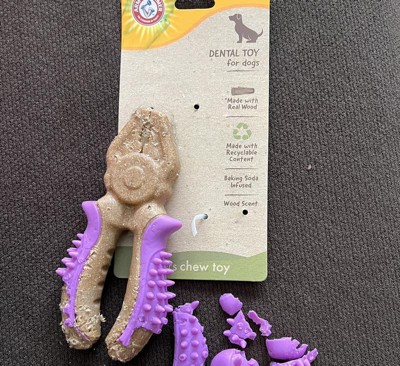Hire your pup to help with your next home improvement project! With the Arm & Hammer Tools: Pliers Dog Chew Toy, you can equip your training toolbox with a toy that helps redirect destructive chewing into positive playtime. Only Arm & Hammer could deliver a tool that serves up double-duty as both a fun toy and a healthy dental chew. Made from blended and compressed natural wood fiber with synthetic material, this chew toy replicates the sensory experience dogs love about chewing wood, but in a safer and sturdier chew toy. Additionally, this dog chew is infused with signature Arm & Hammer Baking Soda to clean teeth and freshen breath. Collect the whole tool set from Arm & Hammer, each with an easy-to-grip shape for hours of easy chewing, durable nubs and grooves to help clean teeth and massage gums, and signature Arm & Hammer Baking Soda to clean teeth and freshen breath.