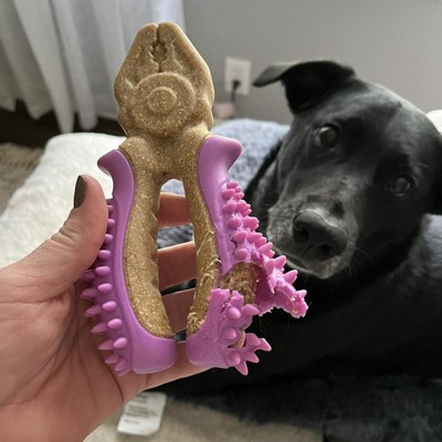- Redirect destructive chewing into positive playtime with a tool that acts as both a fun toy and a healthy dental chew.