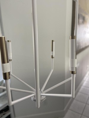 [This review was collected as part of a promotion.] We really like this Armand 4-Light White with Bronze Accent Candlestick Contemporary Foyer Pendant Hanging Light. We installed it in the entry way of our homes entrance and it looks great. I really like the style of the light and that there isn't a hanging chain, like my previous light. The wires are hidden and it gives my entryway a nice clean modern feel and look. The lamp was easy to put together and only took a few minutes. This is a great light of you are looking to update a space in your home with a tall ceiling.