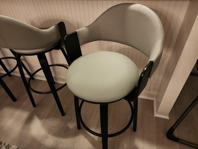 The Daxton 26" Gray Faux Leather and Black Wood Bar Stool will complement the existing decor in your home and help elevate it to the next level. The Daxton features a 360-degree swivel function that allows you to keep the conversation going in every direction. The Daxton is also crafted with a ring footrest - meaning you can relax your feet regardless of the direction you decide to turn! The plush seat cushion is padded with high-density foam that will provide you with immense comfort. The Daxton is available in your color choice of Gray, cream, or brown faux leather with walnut wood or Gray faux leather with black wood. Product Dimensions: W:20 x D:20 x H:36 x SH:26