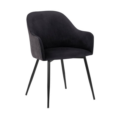 Armen Living,Kenna Modern Dining Chair in Matte Black Finish and Gray Fabric - Set of 2