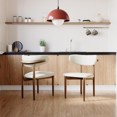 Armen Living,Panda Mid-Century Dining Chair in Walnut Finish and Brown Fabric Set Of 2