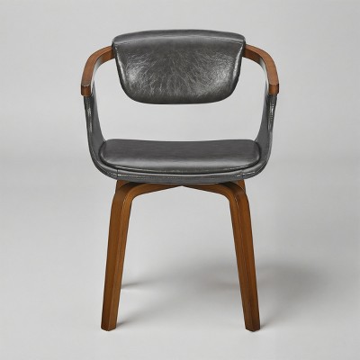 • The Penny dining chair comes in your choice of gray or brown upholstery with black metal legs