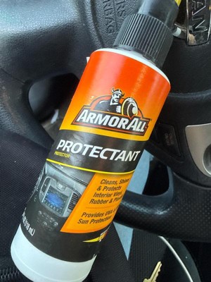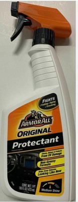 Armor All Original Car Protectant helps you keep your vehicle looking like new. This non-greasy dust remover cleans, shines and protects. The Armor All cleaner prevents cracking, fading, discoloration and aging caused by UV light. Use it to clean away dirt, dust and debris, or as a vinyl protectant to renew and revitalize vinyl, rubber and plastic. Spray it on a clean cloth or directly on surfaces and wipe away the excess. The car interior cleaner works on dashboards, door panels, vinyl seats and consoles. Help keep your car looking and feeling like new with Armor All.
