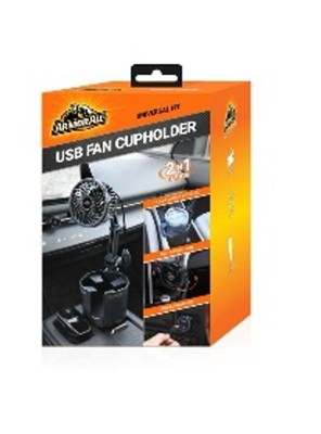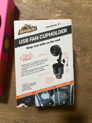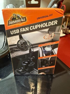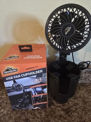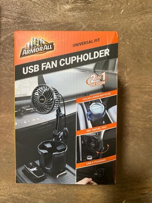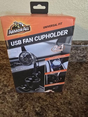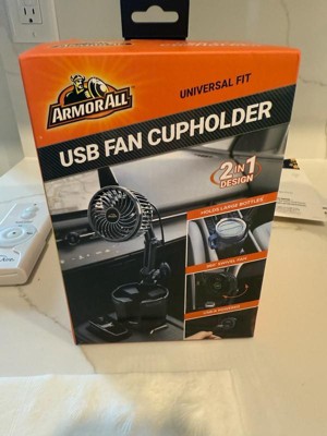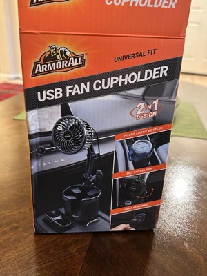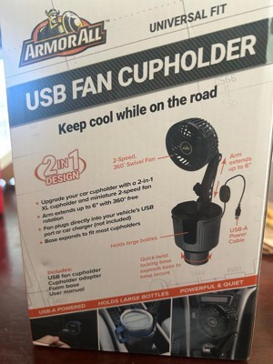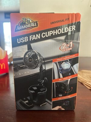 Armor All Car Fan Cupholder, 2-in-1 XL Cupholder and Mini 2-Speed Cooling Fan, USB A Powered, 360° Rotatable, 6” in Arm, XL Cupholder Holds Bottles