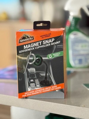 Product Name: Armor All Magnetic Phone Mount for Car, Cupholder Phone Holder for MagSafe Phones, iPhone, Adjustable Gooseneck Design, Includes Universal Magnet Ring