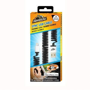 The ArmorAll AMS80101BLK 4ft Flexible Coil Lightning Cable is a durable and versatile charging cable designed for Apple devices with a Lightning port. The flexible coil design allows the cable to stretch and retract, reducing tangling and making it easier to manage. This cable is ideal for use in cars, at home, or on the go, providing a reliable connection for charging and data transfer.