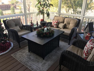 Love our new fire table. It is beautiful when the fire is turned on, but just as beautiful used as a table! Looking forward to gathering here on chilly mornings over the Holidays!