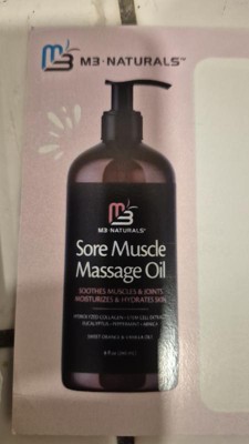 Hi, we’re happy to hear that the Sore Muscle Massage Oil has helped ease your muscle tension. It’s great to know you’re pleased with the product and plan to purchase it again. Thank you for sharing your feedback! Best, Shiela M3 Naturals Support
