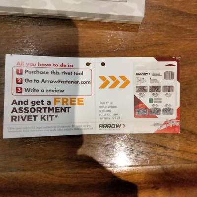 [This review was collected as part of a promotion.] I'm writing this review so I can get the free rivet assortment pack referencing code 0721. I bought this rivet gun so I could re-rivet a window motor in a car and it worked fine. I had no problems using the tool and it worked as expected.