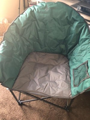 Arrowhead Outdoor Oversized Heavy-Duty Club Folding Camping Chair w/External Pocket, Cup Holder, Portable, Padded, Moon, Round, Bag (Forest Green)