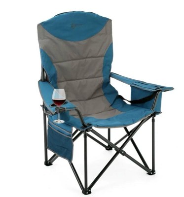 [This review was collected as part of a promotion.] I like the colour blue for the chair.It provides an area to place my cup and it fits easily. Seat is wide and comfortable. It's very sturdy and the cup holders is bigger than other brand which is very convenient. Great for heavier people. I really like this camping chair