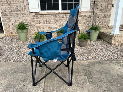 [This review was collected as part of a promotion.] Wow this is amazing! The camping chair comes with a cup holder, pockets for storage, and a drink compartment! It makes camping so much better and easier! I use it to sit in the front yard and relax. The quality is great. It also comes with a chair cover that's for traveling when you fold the chair up. And the blue color is nice!