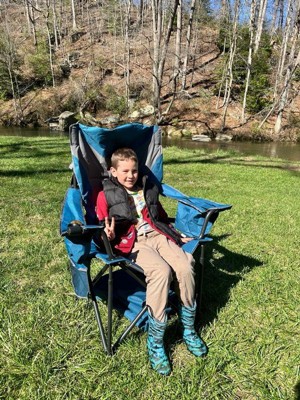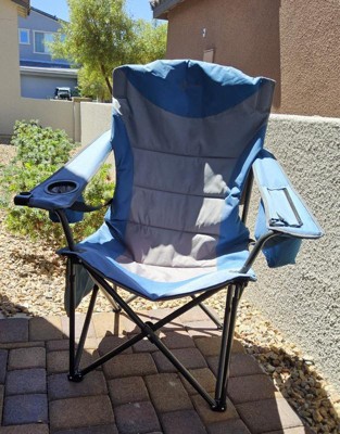 Arrowhead Outdoor XXL Folding Padded Camping Chair w/Cup & Wine Holder, Armrest Cooler, Support up to 600 lbs (Ocean Blue)