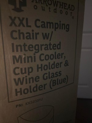 [This review was collected as part of a promotion.] I got the Arrowhead Outdoor XXL Camp Chair and I love it. First of all it is huge! So an adult fits in it with room to spare. This chair is so comfortable!! The insulated cooler on the arm is nice and roomy. It can easily hold a few drinks and an ice pack. The wine glasser holder is really nice. It holds the glass well. The glass comes out easy enough not to spill your wine though. There are 2 big pockets on the back of the chair and also a lower back support. Overall it is a really nice and sturdy chair.