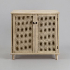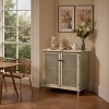 - The cabinet is adorned with two real rattan doors, offering a unique touch of texture and a cheerful, organic feel to the overall design.