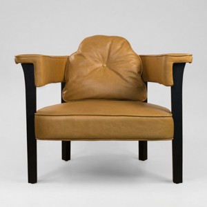 Art Leon Leather Chair, elegantly crafted with an ash wood frame, showcases genuine leather upholstery complemented by a cushioned back and a padded seat. This exquisite piece features comfortable armrests and epitomizes mid-century modern design, arriving fully assembled for your convenience.