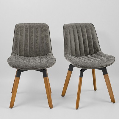 Art Leon Mid-century Modern Faux Leather Swivel Dining Chair, Set of 2