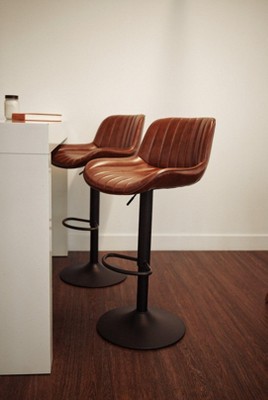 Art Leon Set of 2 Faux Leather Swivel and Height Adjustable Barstool