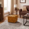 - Luxurious Material: Crafted from premium genuine leather, these ottomans add a touch of elegance and sophistication to your space. Versatile Use: Ideal for use individually or grouped together, they can create a larger seating area or footrest. Their versatile configuration options make them adaptable to various room layouts and purposes. Multi-Functional: While primarily serving as footrests or extra seating, these ottomans can also double as benches—perfect for positioning at the foot of your bed. Additionally, they serve as an alternative to traditional coffee tables or provide extra seating during gatherings. Functional Elegance: Their sleek appearance and durable construction ensure they withstand everyday use while maintaining their stylish appeal.