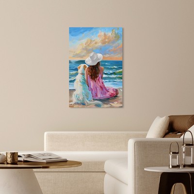 Art Remedy Girl and Her Best Friend Colorful Coastal Wall Art, 30" x 45", Black Frame