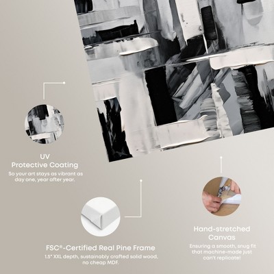 Interior Designers Note: Combining contemporary flair with classic elegance, this sophisticated framed canvas artwork features an iconic Black Abstract design that will transform your space