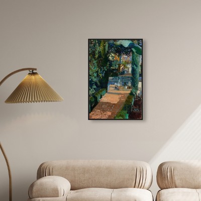Art Remedy Monet - Garden with Dahlias Impresionism Landscape Wall Art, 20" x 30", Black Frame