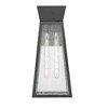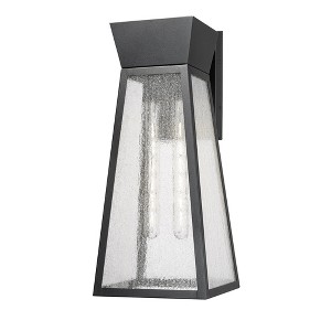 The Lucian collection, designed by Kevin Kraemer, is a distinctive outdoor lantern series renowned for its distinct architecture. These lanterns showcase a rich black finish complemented by the use of lightly clear seeded glassware, adding both style and texture to outdoor spaces. This product is backed by a 25 year warranty on corrosion and 5 year warranty on paint defects. Large size wall sconce shown (two smaller sizes also available) Kevin Kraemer design / Black finish / Dimmable / 2 x E26 bulb base required (bulbs not included) / ETL listed / Limited lifetime warranty / Room location: outdoor. ,