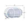 Large wall sconce with semi-clear white glassware, protected by a few neatly shaped bars, in white finish . Warranty: 25 Years warranty on corrosion and 5 Years warranty on paint defectsRoom Style: Exterior Lighting / Shade Included: Yes / Dimmable: Yes. , Material: Aluminum, Finish Color: White, Width: 6.75", Height: 11", Length: 6.75", Depth: 5.5", Backplate Width: 5.5", Backplate Length: 11", Lamping Type: Incandescent, Number Of Bulbs: 1, Wattage: 75 Watts, Dimmable: Yes, Moisture Rating: Wet Rated