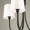 From the S&C design firm, with strict direction from Steven Sabados, the Rhythm Collection chandelier features a traditional type frame with flat tubular arms. The frame is finished in rich plated brushed gold and complimented with linen hardback white shades. Rhythm Collection Lifetime warranty on electrical components, 5 Year warranty on LED components and finish Dimmable, sloped ceiling compatible, adjustable height ETL Listed, EZ-Link Smart Device compatible E12 bulb base, bulb not included Indoor/Dry Brushed Gold Finish.,