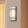 The Sausalito collection of transitional outdoor sconces featuring thin metal banding which encases a frosted white diffuser and is illuminated by bright energy efficient LEDs. This can be used outdoor or indoor (This model has a 25 year warranty on corrosion, and a 5 year warranty on paint defect). Sausalito Collection 5 Year Warranty on premature paint defects and 25 Year warranty against corrosion Dimmable ETL Listed Integrated LED bulb type Outdoor/Wet Black Finish.,