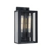 Designed by the Lighting Pulse, the Waterville fits that traditional space with ease. The rectangular shape, banding and clear glassware make this series a perfect compliment to any home. Smaller size available (This model has a 25 year warranty on corrosion, and a 5 year warranty on paint defects). 25 Year warranty on corrison / Lighting Pulse design / 5 year warranty on paint defects / Wall sconce / Location: Exterior/wet / Matte Black finish / E26/Medium (Standard) bulb base. ,