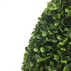 Introduce an eye-catching and low-maintenance accent to your home decor with the Boxwood Faux Topiary Tree. Its natural green boxwood leaves and the design of its trimmed foliage make it a sophisticated and modern option to incorporate some greenery to your indoor or outdoor living spaces. This artificial topiary tree is made of high-quality materials that are UV-resistant, making it a perfect choice for your front door, patio, or any other area. The potted design of this faux boxwood plant makes it easy to display, and its realistic look will make it hard for anyone to tell it's not a real plant. Ideal for both indoor and outdoor use, this UV-resistant topiary faux tree tree is perfect for those who love artificial topiaries, topiary trees, and faux boxwood plants.