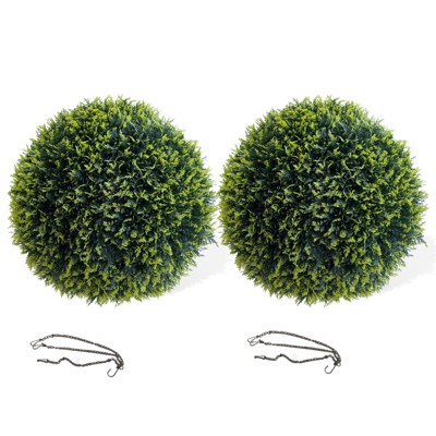 Artificial Boxwood Topiary Ball Set 2pcs 15.7In with Hanging Kit for Indoor Outdoor Decor