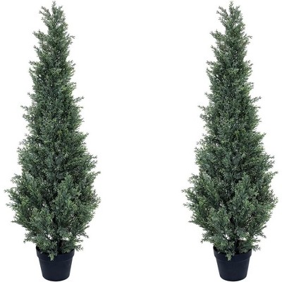 Coucheta 36inch Artificial Cedar Topiary Tree for Outdoor, Tall Faux Cedar Trees,Potted Fake Cypress Plant, Artificial Plants for Decor, Set of 2