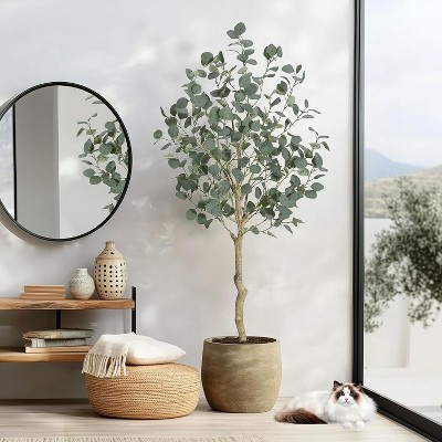 - Lifelike and Lush Appearance: Elevate your home decor with our realistic faux eucalyptus tree, designed to offer a vibrant, fresh look year-round. Featuring a dense arrangement of and leaves, this tree provides a natural and full appearance