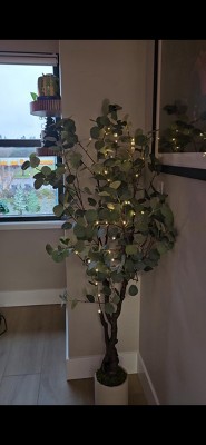 5 FT Artificial Eucalyptus Tree Indoor, Realistic Fake Potted Plant, Large Faux Floor Plant Fake Silk Trees, 50 Lights Artificial Trees for Home