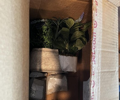 I ordered the small size and it arrived tightly wrapped and perfect. I decided to order the bigger one since I loved the small one. It arrived in a big box with nothing to protect it or to keep it from moving during shipping. It arrived shattered. Which is unfortunate because it really is a beautiful plant. Target needs to teach their crew how to properly package items for shipping. There have been numerous items that I have bought that arrived damaged. Very disappointed!!