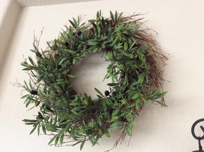 - • Realistic Faux Olive Leaf Wreath: This green leafy wreath brings the beauty of nature indoors with its natural-looking branch wreath, perfect for any season.