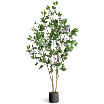 DR.Planzen 5-7FT Artificial Ficus Tree in Oval White Pot, Pre Potted Faux Tree for Indoor Home Decor