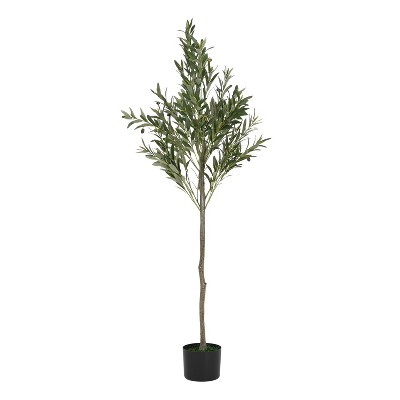 Olive Tree: This olive tree is a classic entrance plant. Mess-free and wonderfully green, bring a tropical atmosphere into your home with a natural flourish. Pre-potted: Our plant comes pre-potted so you can easily place this accessory in your favorite basket or planter pot, making this easy for you to complement any existing decor in your home. Easy Maintenance: This accessory offers the beautiful look of a real-life plant without the upkeep. With faux leaves and a flexible iron frame, this plant can be posed to your liking. A Touch of Personality: Easily customize your interior space with this outstanding artificial plant. With life-like leaves and branches, this accessory will be sure to enliven any space with a bit of greenery. Dimensions: Choose an accessory that is the perfect size for you and your furniture. This plant comes in 31" W x 31" D x 66" H. You will love how much your space can transform with the simple addition of this charming artificial plant. Assembly Required: Some assembly is required for this olive tree. All of the instructions and tools needed for assembly are included.