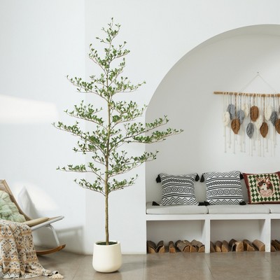 Bring lifelike Mediterranean charm into any space with this 4.9ft Pencil Artificial Olive Tree, thoughtfully designed to solve the most common issues of faux plants. Built with a real wood trunk, multi-toned olives, and matte PE foliage, it avoids the plastic shine and flat coloring seen in typical artificial trees. With 544 lush leaves, the tree delivers a fuller, more realistic look that photographs beautifully and instantly elevates living rooms, bedrooms, entryways, hallways, dining areas, and home offices.