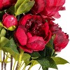 Vickerman 23'' artificial red peony bush. add a pop of color to your home or office with vickerman's 23-inch artificial red peony bush. this beautiful faux peony bush boasts six full blooms and three new growth buds, creating a vibrant, lush display. These faux peonies are sure to impress, featuring realistic artificial flower blossoms in a bold red hue paired with rich green foliage. These are an excellent alternative to live peony plants. An excellent decoration option for formal events and weddings. Perfect for indoor use, these maintenance-free artificial flowers are easy to keep looking fresh with just a quick wipe of a dry cloth. Arrange the faux peonies in any decorative container for a unique floral arrangement that adds a touch of nature to your home or office decor. These peonies will add a great accent any room. measures 23" high x 15" wide x 15" deep. Vickerman has been an industry leader since 1940. our expert designers focus on every detail to create artificial plants that look more natural.