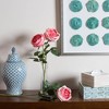 The Vickerman 25" Artificial Dark Pink Open Rose Stem adds a vibrant pop of color and elegance to any décor. Featuring a single fully opened bloom with rich green foliage accents, this beautiful stem makes a stunning addition to any arrangement or stands gracefully on its own in a decorative vase. Its brilliant color will stay fresh season after season. Each pack contains 6 stems, perfect for creating a lasting, eye-catching display in your home or office.
