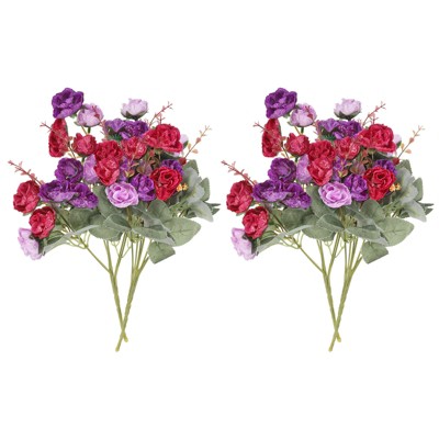 Artificial Purple Roses in Glass Vase with Faux Water, Lifelike Fake Floral Centerpiece for Table Home Wedding Decor.