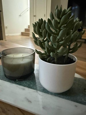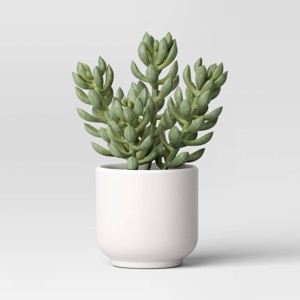 Add a touch of greenery to your indoor space with this Artificial Succulent Plant from Threshold™. This artificial potted plant features sage green succulent branches arranged together to bring a touch of nature to your indoor space, and comes potted inside a melamine pot for easy display on any surface. Just place it in the entryway or living room along with other potted plants to lend a warm, welcoming vibe to your space.