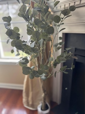 Artificial Tree Plant Eucalyptus Tree 5FT Tall, Modern Large Fake Plant Decor in Pot for Indoor Outdoor,Home Office Ideal Housewares, Eucalyptus Tree